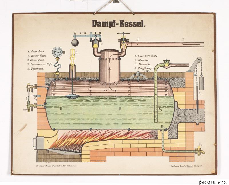 Dampf-Kessel (ångpanna). M. två krokar (hängare) och kantband.