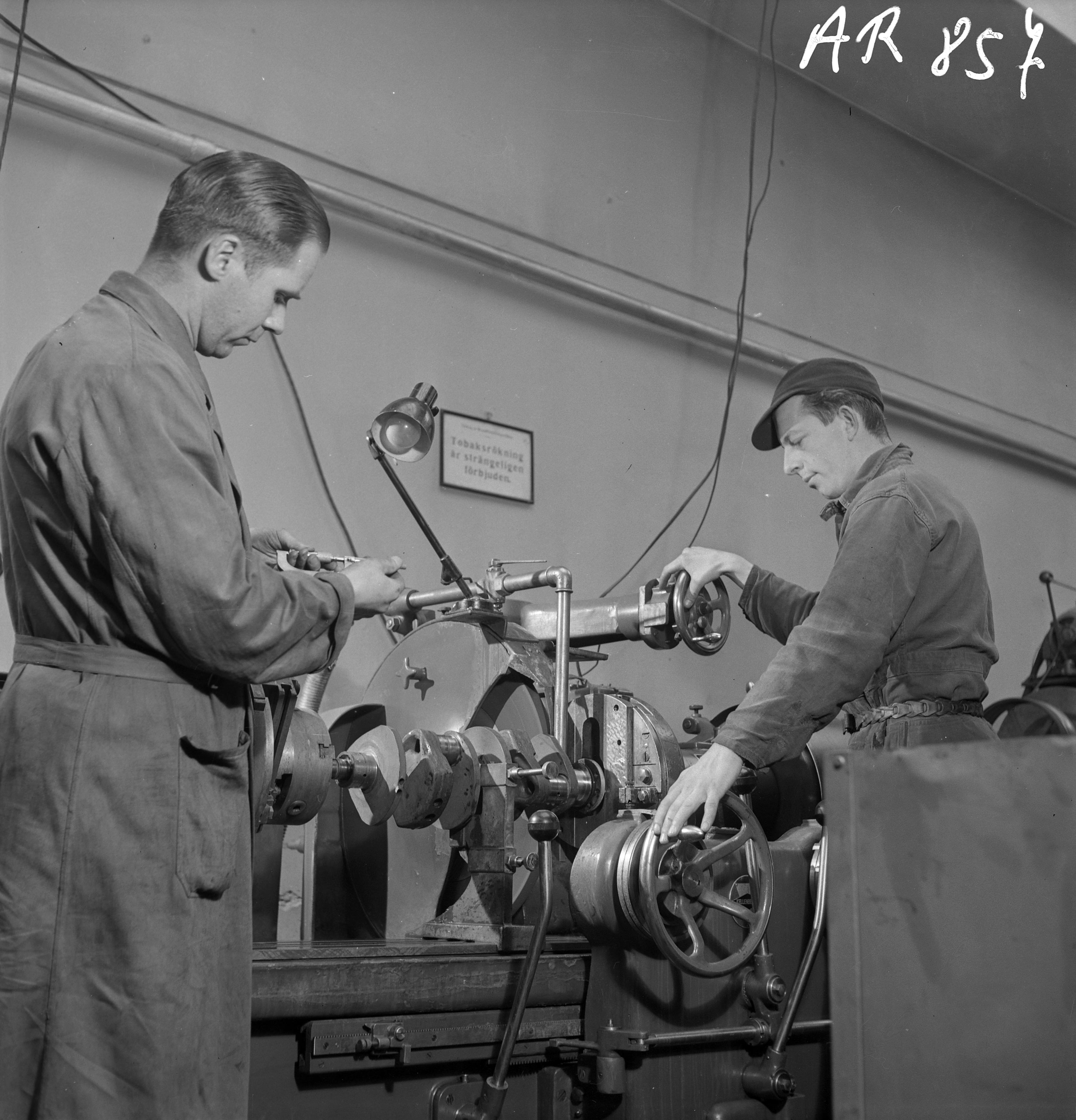 AB Sterner Blomqvist - fabriksinteriör, två män vid maskin, Östra Förstadsgatan 9