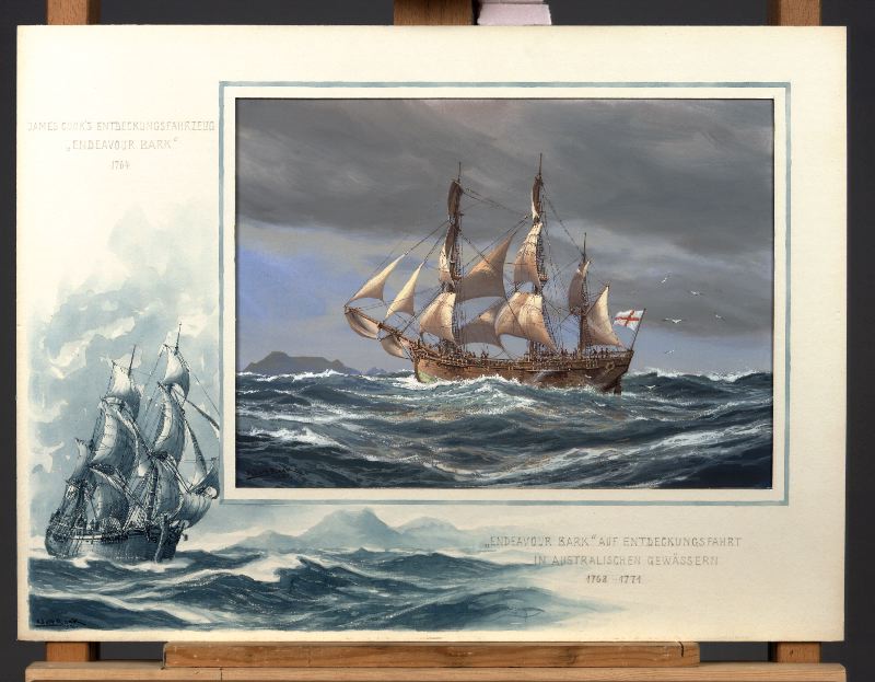 - Målning av James Cooks forskningsfartyg ENDEAVOUR under seglats på öppet hav (målning), samt i ett gestaltat sceneri utanför australiska kusten 1768-1771. Ingår i serien "Berömda segelfartyg" som en av sammanlagt 60 målningar (MSM 1980.038-097) gjorda för Allhems Förlag i avsikt att tryckas och utgivas som planscher i mapp.